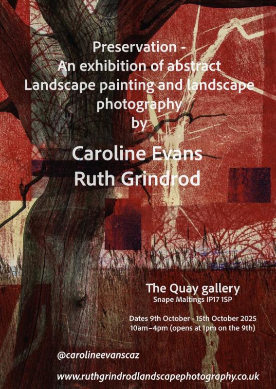 Ruth Grindrod, Norfolk-based landscape photographer, and Caroline Evans, artist, collaborate in an exhibition of their work entitled 'Preservation' to be shown at The Quay Gallery, Snape Maltings IP17 1SP, 9th-15th October.